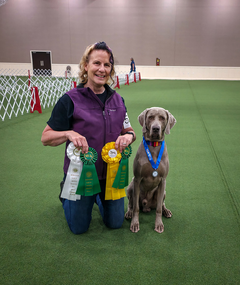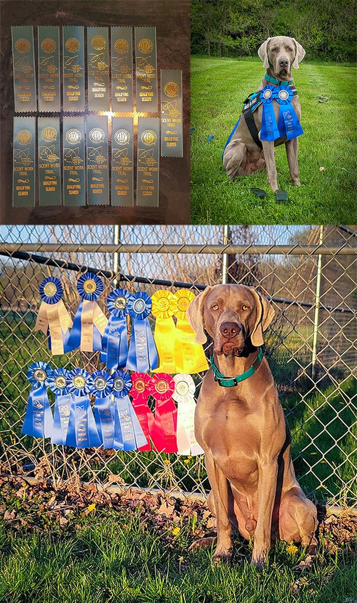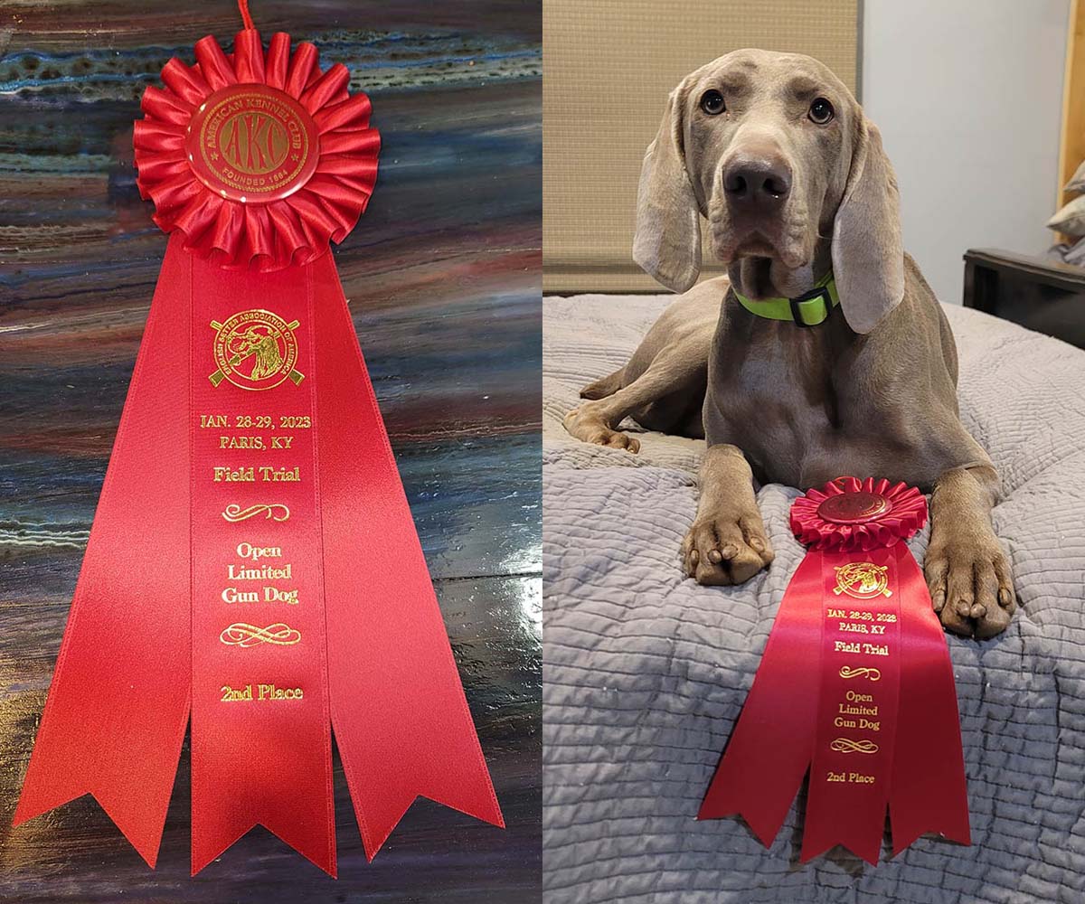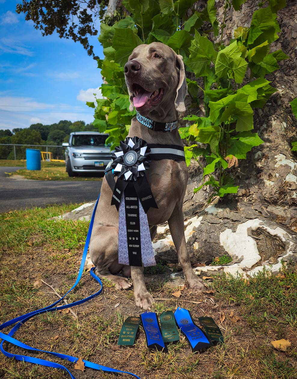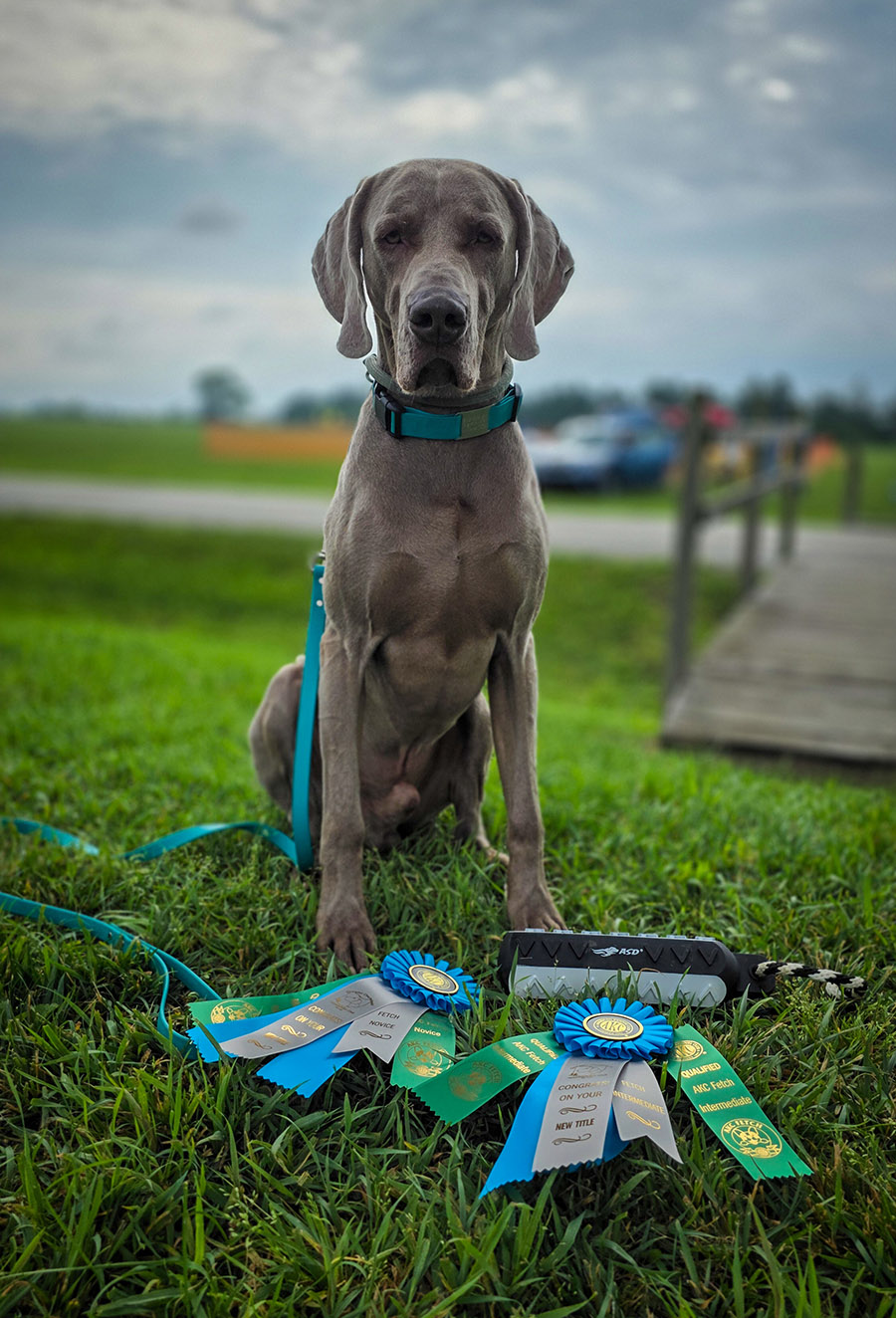 2nd place (by only 3 points) Most Versatile Weimaraner at the 2022 National Specialty