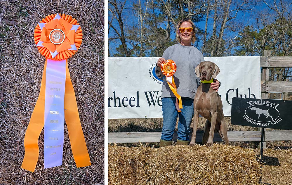 With this new Master Hunter title, Pizza earned her "VX2" (Versatile Excellent 2) rating from the Weimaraner Club of America. Versatility is something we place a high value in, so this makes us extra proud!