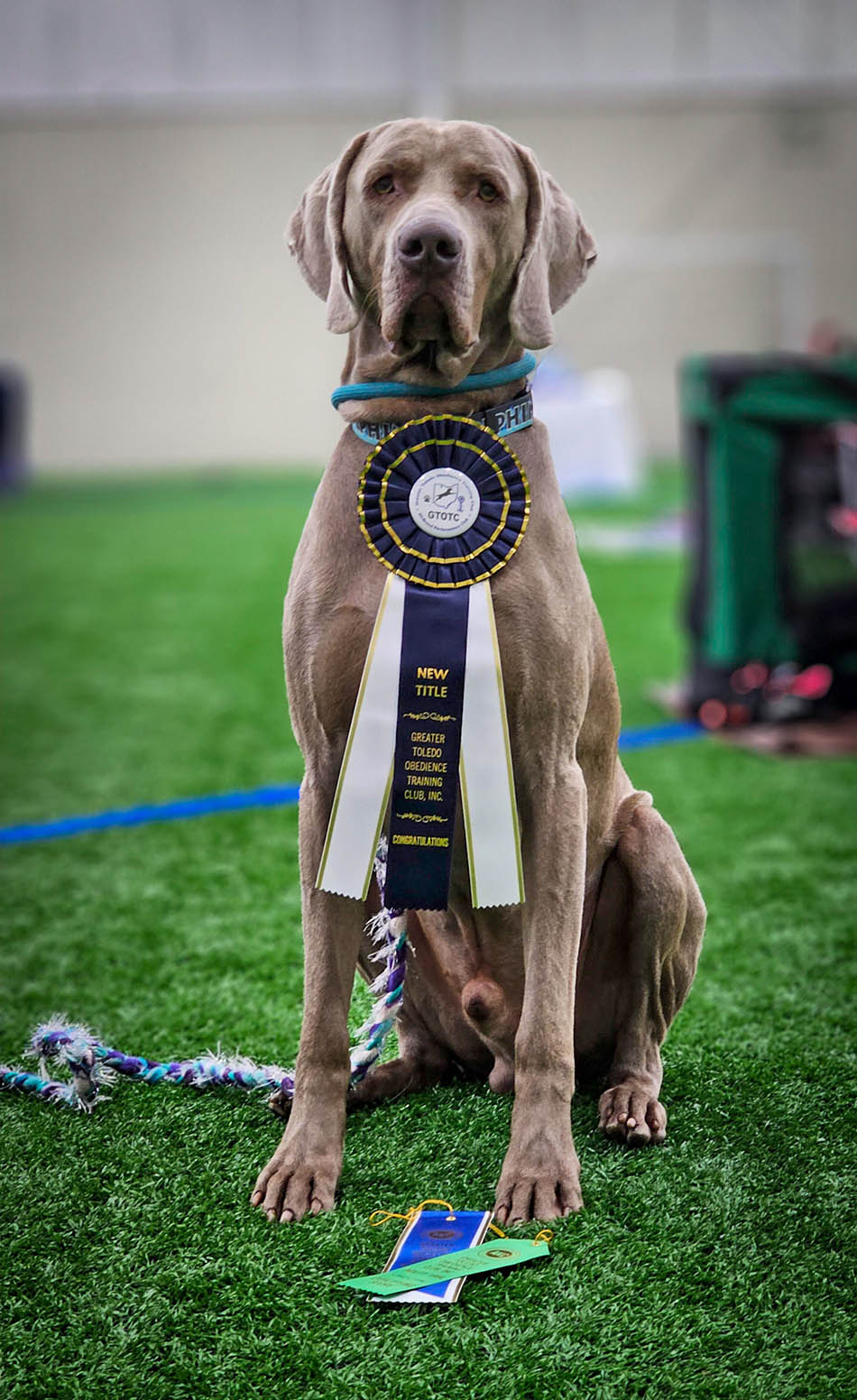 At the 2025 Weimaraner National Specialty, Dolphin earned a 3rd and 4th place out of 17 in Rally Novice to finish his RN title.