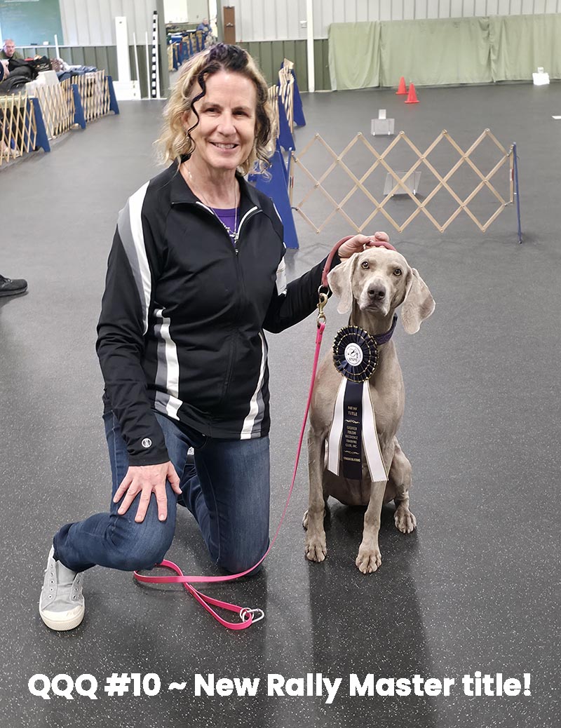 Noodle earned her Rally Master title today at the Greater Toledo Obedience Training Club rally trial. She also earned triple QQQ number 10 towards her RACH, with placements in all three classes.