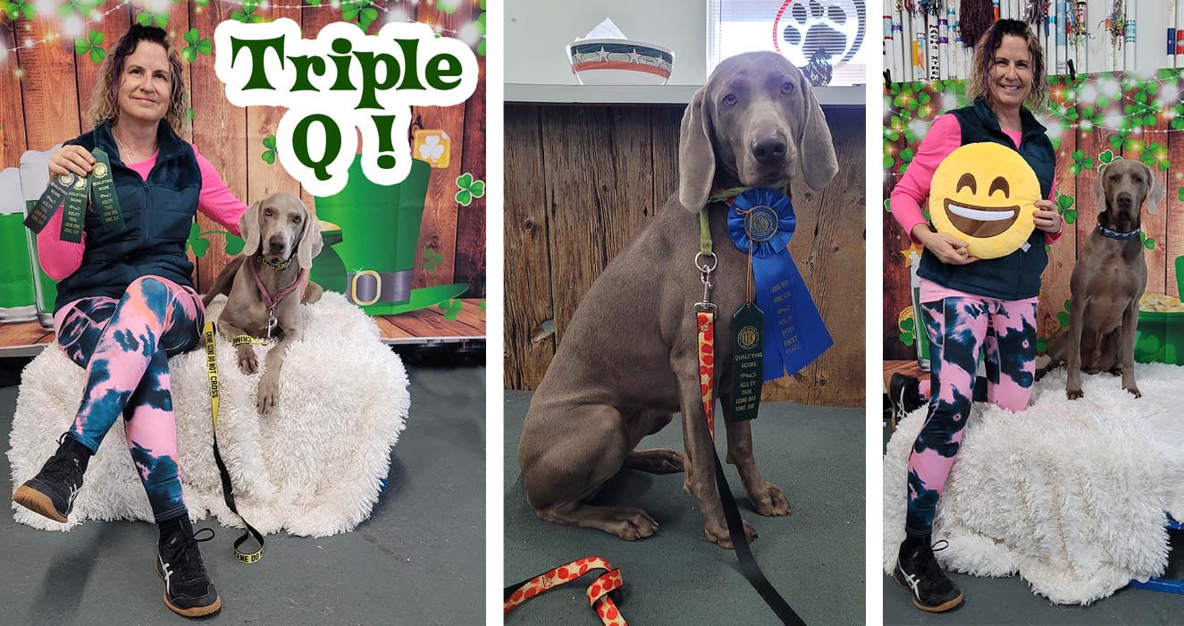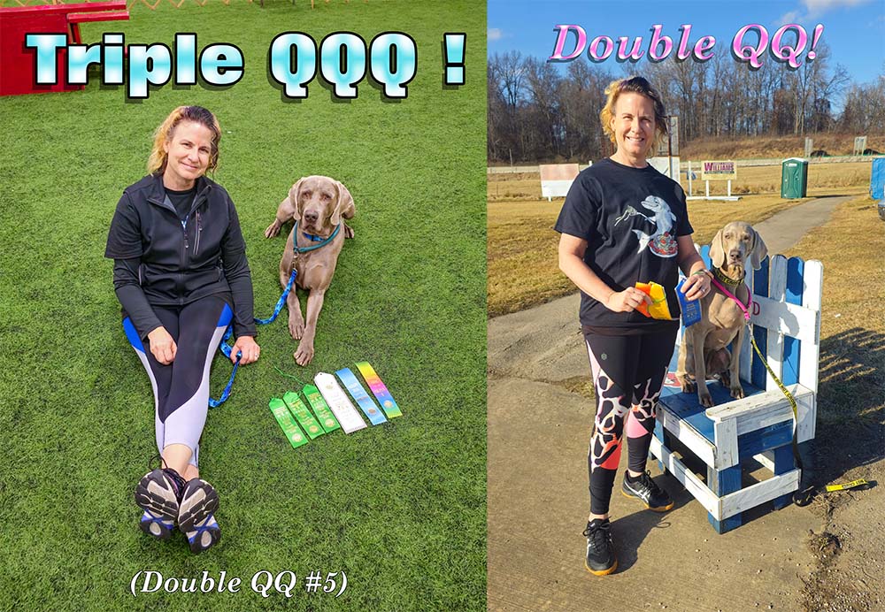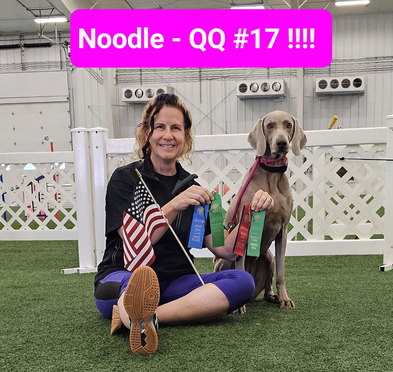 Noodle answered by getting her own double QQ #17 the next day with a first and second place finish. It was a great weekend of agility for the Weimaraner crew!