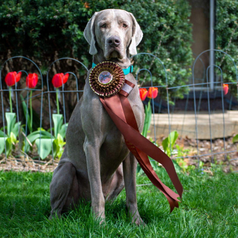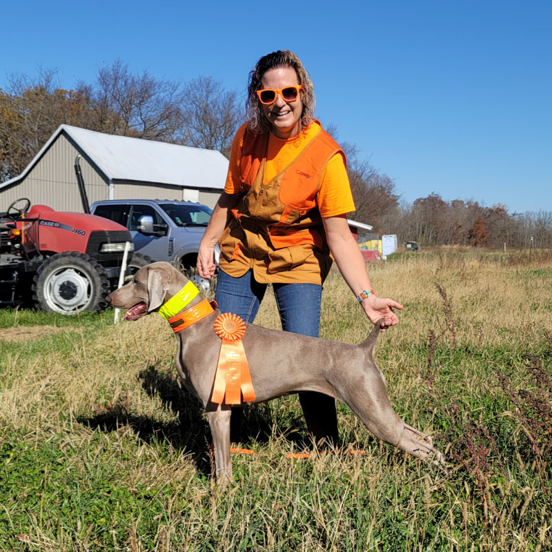At only 16 months of age (and the youngest Weim in competition), Pizza earned her invite to the NOHS Finals at the AKC National Championship show by finishing the year in 7th place. She showed wonderful in the finals and won Best of Breed, also making the cut in a very tough 32 dog sporting group in Orlando, Florida!