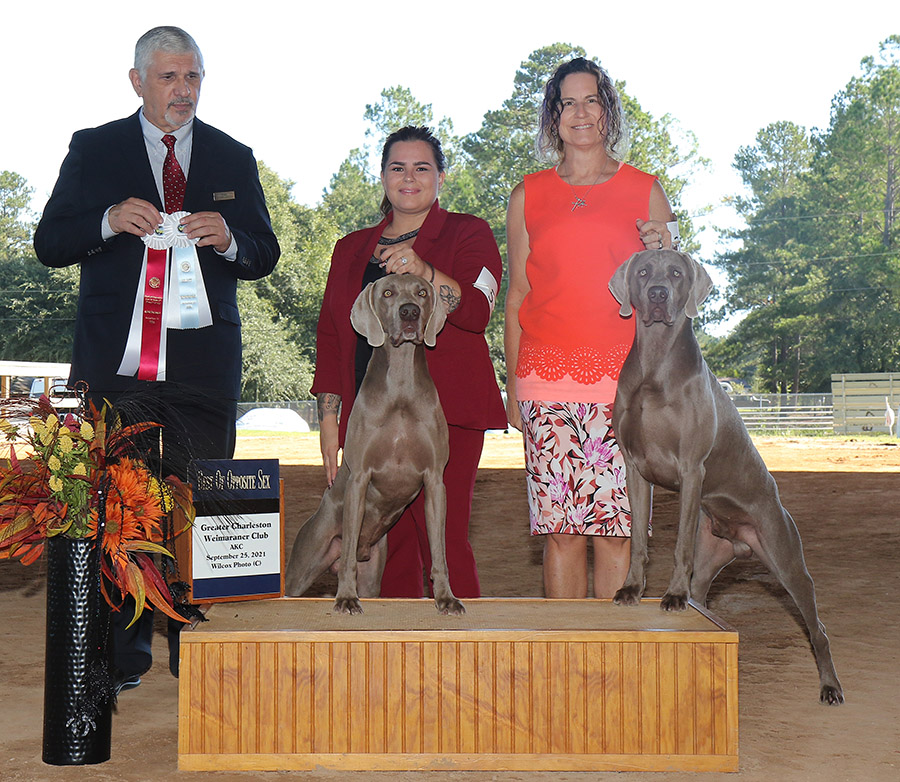 It was a great day at the Greater Charleston Weimaraner Club specialties in Columbia, South Carolina as two Pretzel sons came out on top of a lovely group of specials - Marshall (Preztel x Mouse, DOB 11/1/17) took Best of Opposite and Dolphin (Pretzel x Country, DOB 4/4/20) took Select Dog.