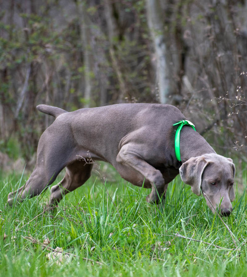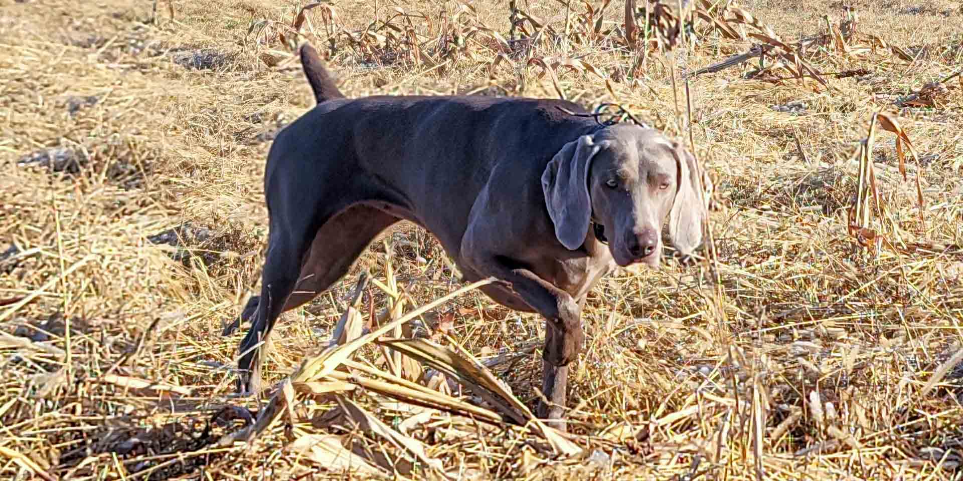 Pizza's greatest success has been in the field. At her first field trial, she won a very nice 2 point all-breed Derby stakes, and finished up 2021 in the top 5 Derby list for Weimaraners, then went on to garner multiple gun dog wins to earn points towards her field championship. She completed her Senior Hunter title in one month, and finished her Master Hunter title at just 2 1/2 years old in 3 weekends. She has a beautiful, dramatic point and a natural honor.