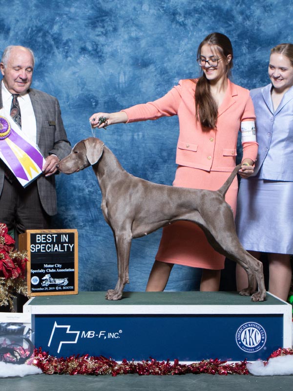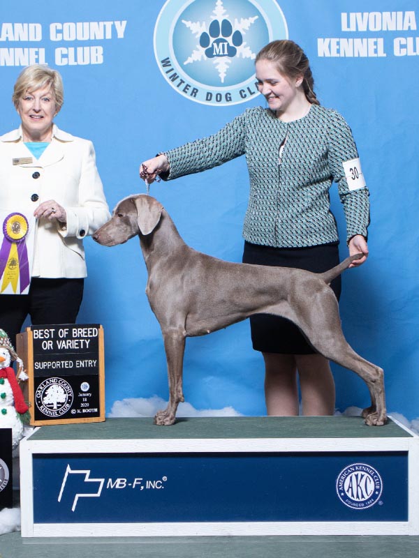 AKC 2020 Weimaraner Puppy of the Year Best of Breed winner at the 2020 AKC National Championships Puppy Stakes - 8 months of age